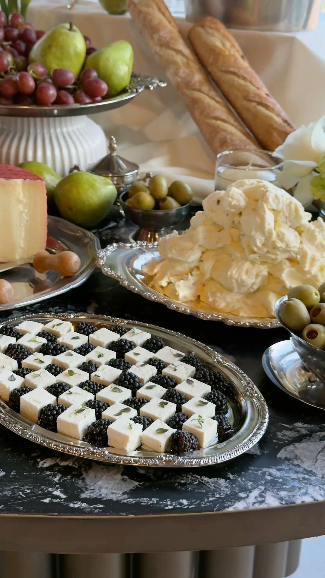 Includes a beautifully curated food display styled on our signature silver platters, thoughtfully designed to be both visually striking and freshly delicious—perfect for elevating weddings, cocktail hours, and special events.